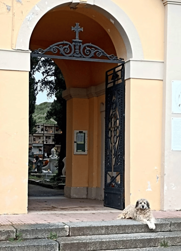 Il pelo bianco è un po’ rovinato da quando, dopo la sua morte, la padrona non ha potuto più prendersene cura. Ma l’animo è bello, limpido, sincero. L’animale non ha mai mollato l’angolino del cimitero dove riposa la sua ex padrona. Addirittura riconosce la lapide e non si allontana da lì, come testimoniano le foto in cui l’hanno immortalata Eugenio Pannucci e Mimmo De Marco, due residenti in zona. Come hanno raccontato i due sui social, “è arrivata anni fa dietro il carro funebre della sua signora e non è mai più andata via da qui”.