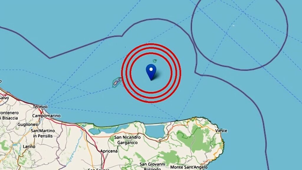 Il terremoto è avvenuto a latitudine 42.1240 e longitudine 15.7200, lungo la costa garganica