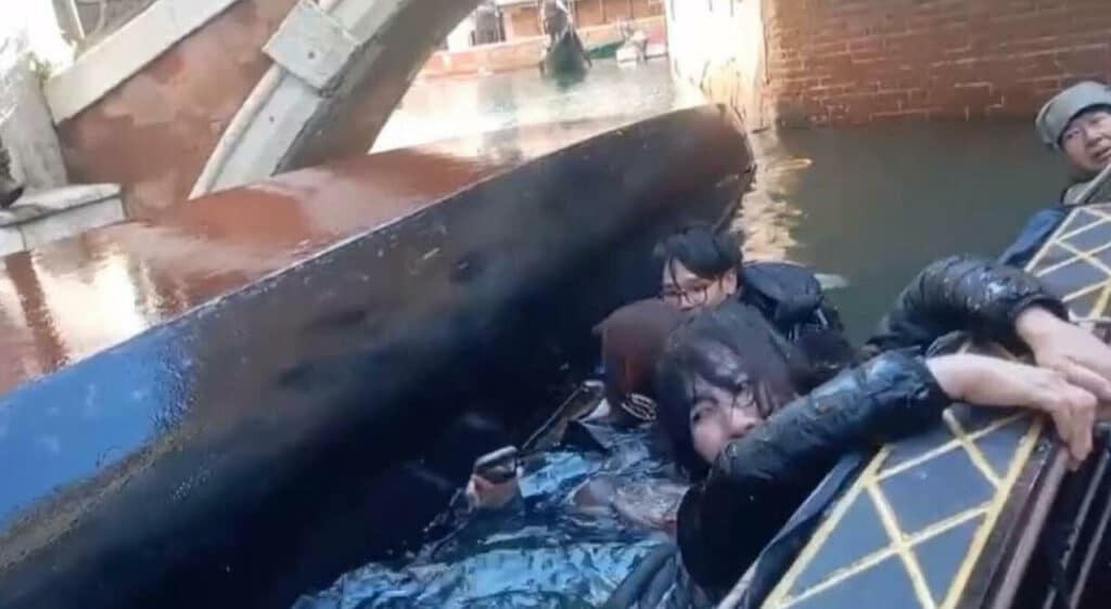 Come si nota nel video pubblicato sulla pagina Facebook “Venezia non è Disneyland”, il gondoliere è stato uno dei primi ad uscire dall’acqua e a soccorrere i turisti. Naturalmente non c’è stato nessuno ferito ma la paura è stata tanta. Così come il freddo percepito dai malcapitati per esser finiti nelle acque gelide del canale.