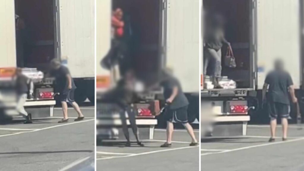 La scena è stata ripresa in un video diventato virale: il camionista ha iniziato a frustare i migranti non appena li ha scoperti nel suo tir