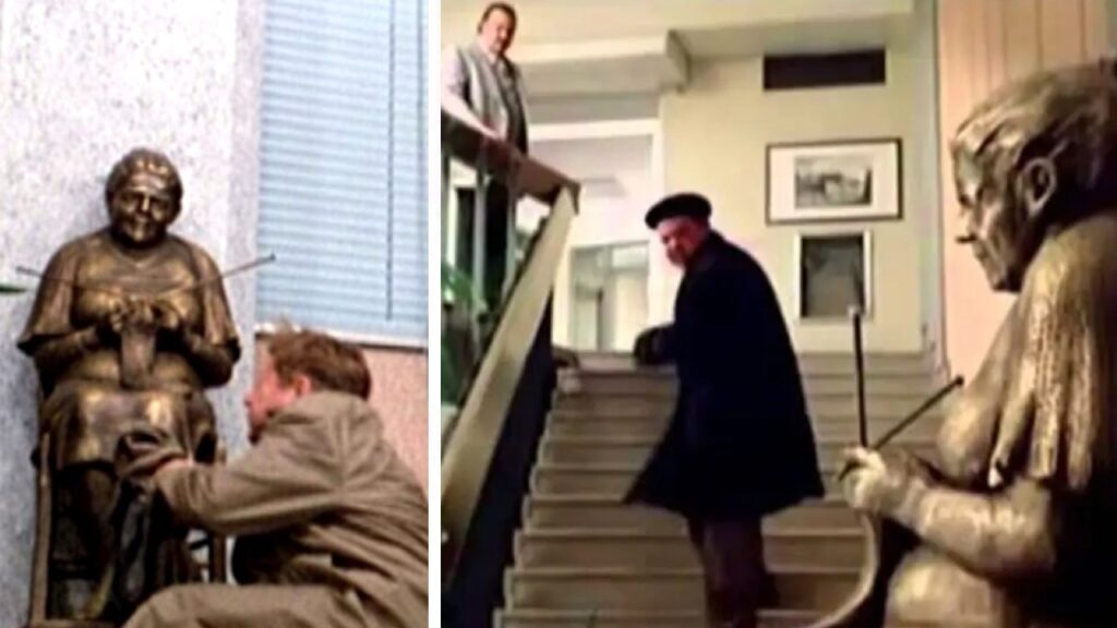 L’omaggio alla madre di Catellani è assai temuto dai dipendenti e considerato alla stregua di un’entità divina. Oltre che un mito da cui stare a dovuta distanza. Proprio per questo motivo nel film il ragionier Fantozzi rende omaggio alla statua, che ritrae l’anziana all’uncinetto, in modo più che servile.