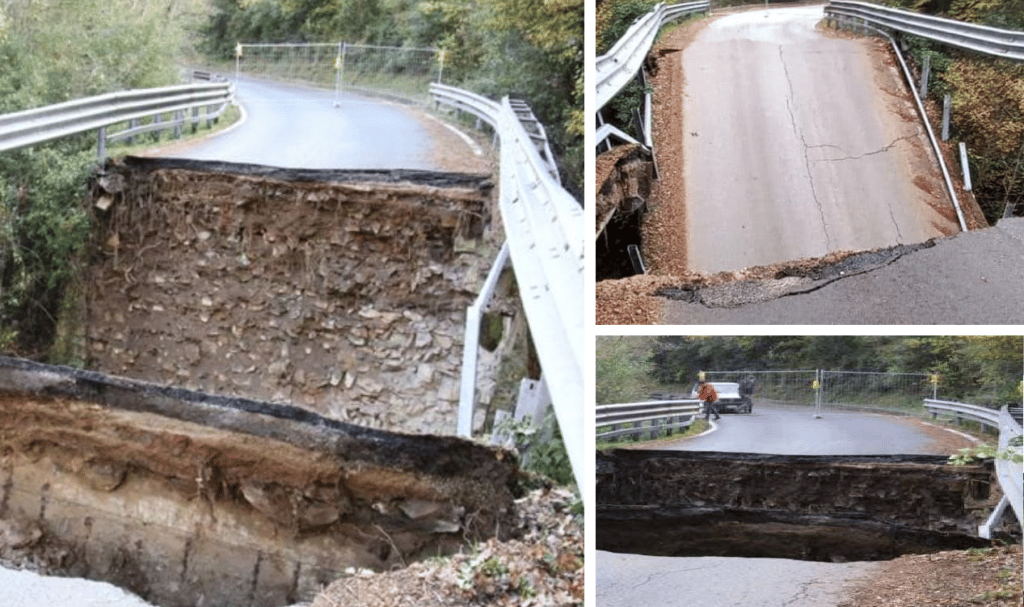 Nella serata di giovedì 1°dicembre è crollato un tratto di strada in un ponte in Toscana, nel territorio di Monteverdi Marittimo in provincia di Pisa: adesso c’è una voragine di diversi metri. Fortunatamente al momento del crollo non passava nessuna auto. “Tragedia sfiorata”, lo dice il sindaco di Monteverdi: “Un vero miracolo”.