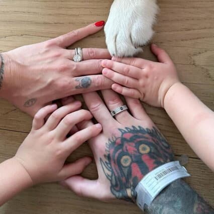 Una volta a casa, ha subito pubblicato sul suo profilo Instagram una foto di famiglia. Una di quelle speciali. Ogni membro stringe la mano dell’altro, compresa la zampa di Paloma, il loro gatto. “Finalmente a casa. Grazie per l’affetto e la vicinanza, nulla è scontato in questi momenti”. Riporta la didascalia del post.