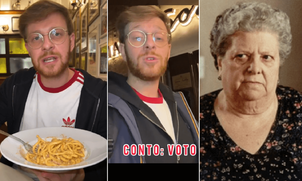 Un supplì alle tre carni “veramente filante”, al quale l’influencer attribuisce un voto 8 in una scala immaginaria da 1 a 10. Poi arrivano le polpette della nonna al sugo, solo la sufficienza ma il tiktoker non sembra mangiare controvoglia, anzi. Il piatto forte però appare quello della carbonara, “cremosissima”, che si merita un bel voto 10 con tanto di commento: “Perfetta”. Il giovane influencer prosegue con i primi piatti e va matto per il tonnarello alla cuccagna, un piatto inventato dal locale, pensate, nei primi anni Sessanta e che merita il voto di 9. Comprendiamo che i primi piatti sono il pezzo forte della cucina della Sora Lella, non poteva essere altrimenti visti i famosi racconti di Carlo Verdone sugli squisitissimi bucatini che “stendevano” il set intero, per bontà e quantità. Si tratta di “una pasta che accontenta tutti”, dentro “c’è tutto”.