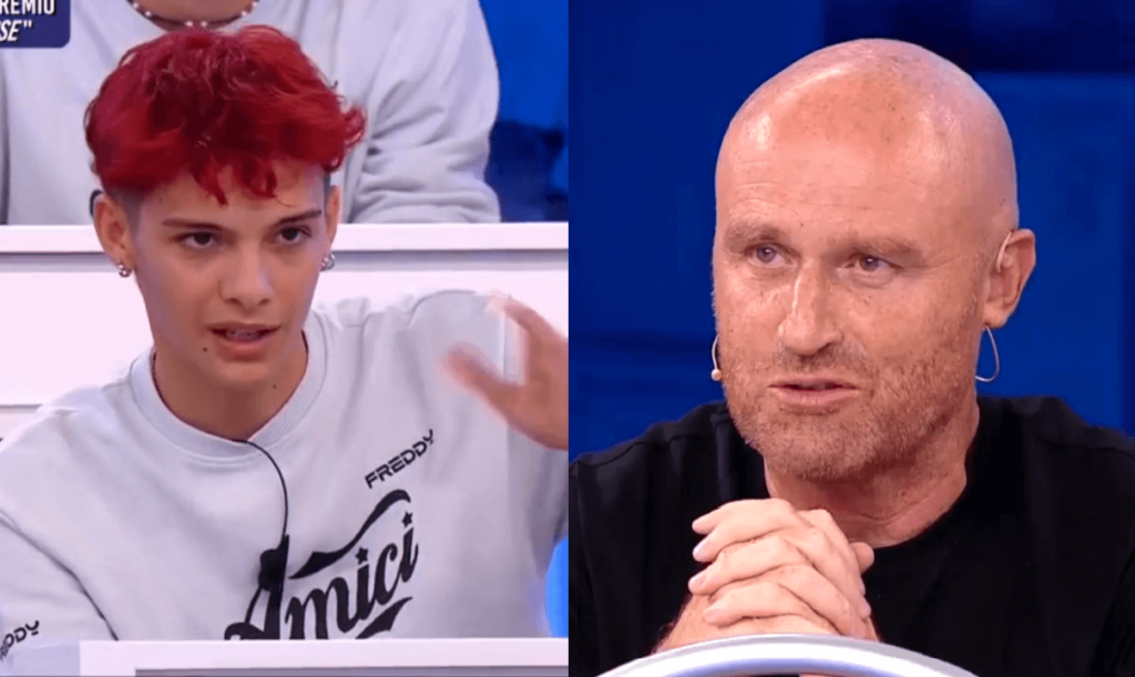 “Vi devo dare una bella notizia: siamo solo la primo giorno di scuola e già c’è un premio, il premio ‘fenomeno della classe'”, dice il coach prima di lanciare il filmato. L’audio è inequivocabile, viene mandato due volte e anche al rallenty per scandire meglio. Al rientro in studio, l’ex concorrente di X Factor ha immediatamente tentato di ridimensionare le sue parole: “Chiedo scusa per il modo, mi riferivo a quando lei ha detto ‘voglio vedere se lui, alla Pettinelli, la fa la cover’. Io l’ho presa come una sfida, tutto nel gioco”. Il ragazzo prova a spiegarsi, fatica anche un po’ ad esprimersi per via del disagio, non pensava di finire sotto i riflettori così presto.
